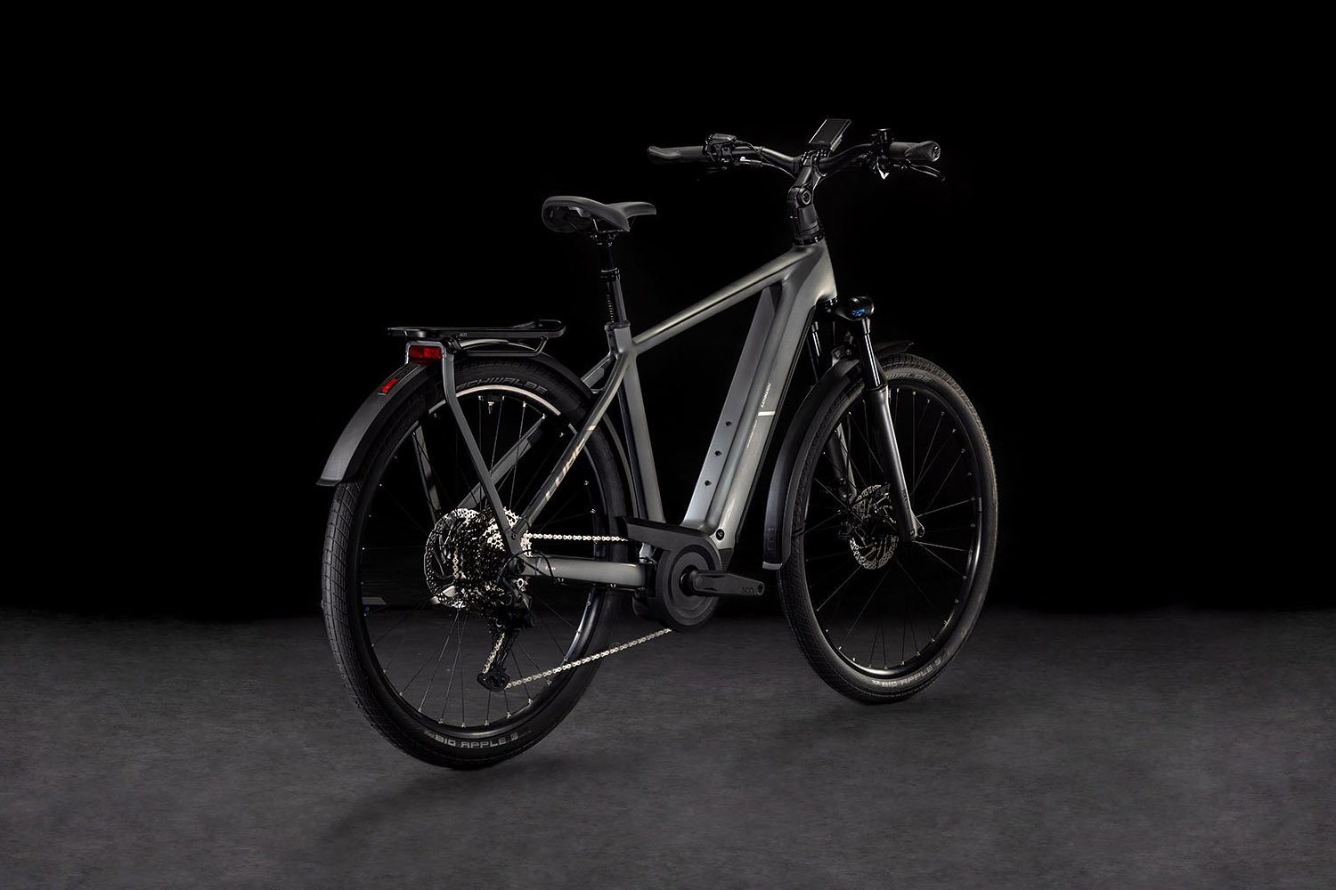 Il telaio della CUBE Kathmandu Hybrid può sembrare poco spettacolare a prima vista, ma un secondo sguardo rivela la sua eleganza, la sua classe e le numerose innovazioni e dettagli ingegnosi. Il motore Bosch CX e la batteria PowerTube, integrati in modo estetico e pulito nel design, sono solo l’inizio. La geometria Efficient Comfort Geometry funziona in armonia con la forcella ammortizzata da 100 mm, che ottimizza il controllo, soprattutto in condizioni difficili. Inoltre, il passaggio interno dei cavi contribuisce all’aspetto pulito del telaio e riduce notevolmente le operazioni di manutenzione. Cos’altro c’è? Un UDH versatile e quasi indistruttibile per facilitare la disponibilità dei pezzi di ricambio, una protezione catena integrata e il nostro portapacchi IC 3.0 integrato, stabile, robusto e dal design accattivante, che offre spazio per tutto ciò che devi portare con te durante un viaggio avventuroso.