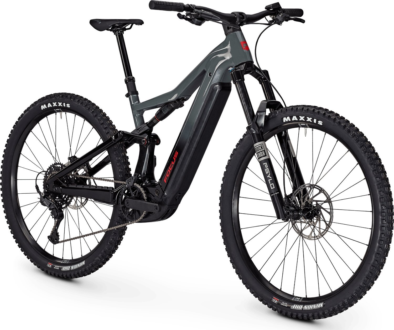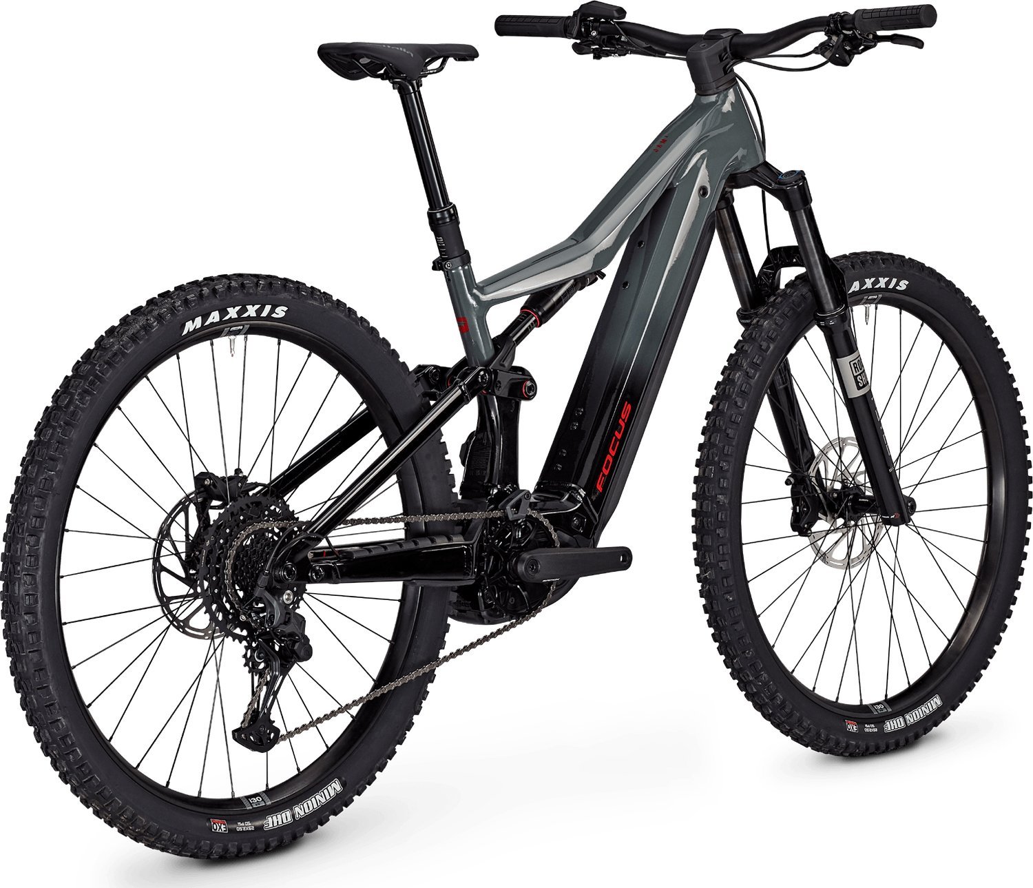 Le sospensioni della THRON² sono completamente ottimizzate per le lunghe escursioni in montagna. Come su un tappeto volante, tutte le irregolarità del terreno vengono semplicemente assorbite dalle sospensioni durante la discesa. L’escursione delle sospensioni è controllata e fluida. In salita, i lunghi basamenti consentono alla ruota anteriore di essere letteralmente aspirata al suolo. L’angolo di seduta rilassato e la parte anteriore alta creano la posizione di guida più comoda della gamma FOCUS E-MTB.