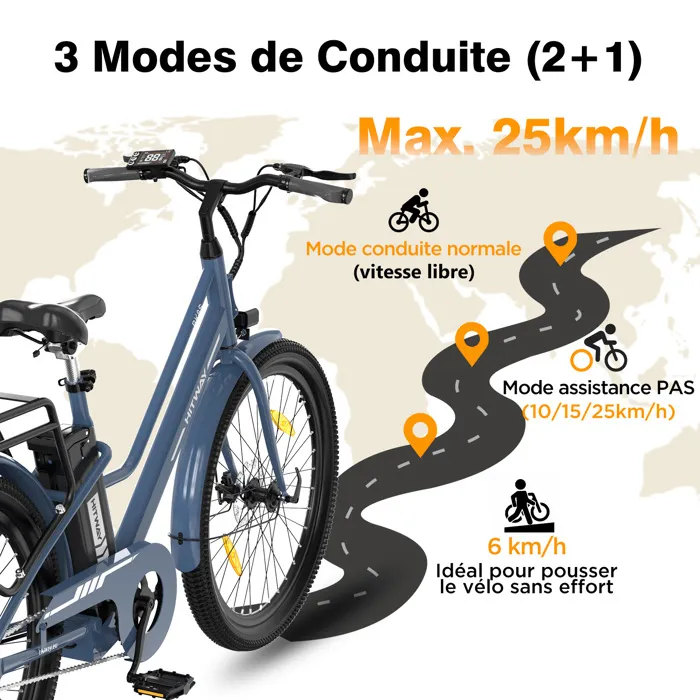 La HITWAY Bicicletta elettrica 27,5″ è una e-bike versatile per l’uso urbano e il tempo libero, progettata per gli spostamenti quotidiani, le uscite in città o su percorsi leggermente accidentati: