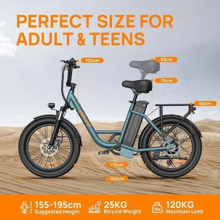 La URLIFE E20 – Bicicletta elettrica da 20″ con pneumatici larghi è una bicicletta elettrica versatile, adatta agli spostamenti urbani e a percorsi di vario tipo. È dotata di pneumatici larghi 20 × 3,0 pollici che migliorano l’aderenza e la stabilità su strade, ghiaia o terreni irregolari, rendendo la guida più confortevole anche fuori dall’asfalto. Il suo telaio robusto (spesso in acciaio) e la sua forcella anteriore ammortizzata contribuiscono a una guida più fluida su diversi terreni.