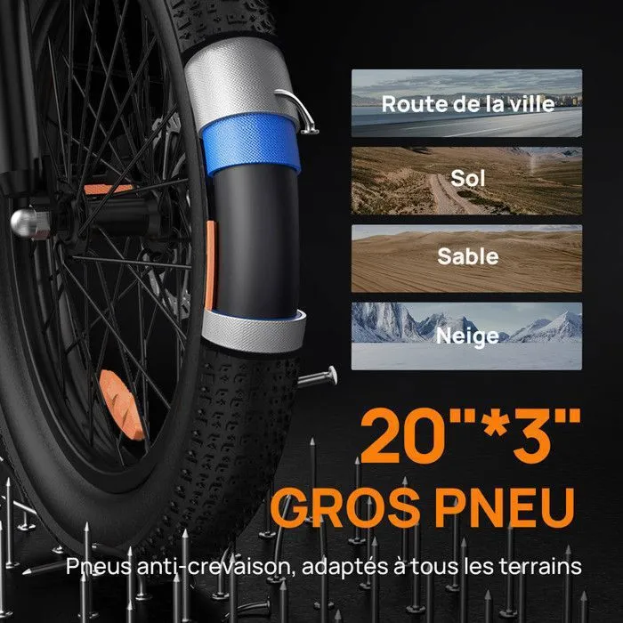 URLIFE E20 – Bicicletta elettrica da 20″ con pneumatici larghi